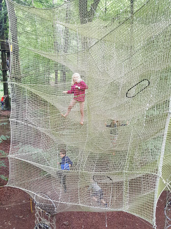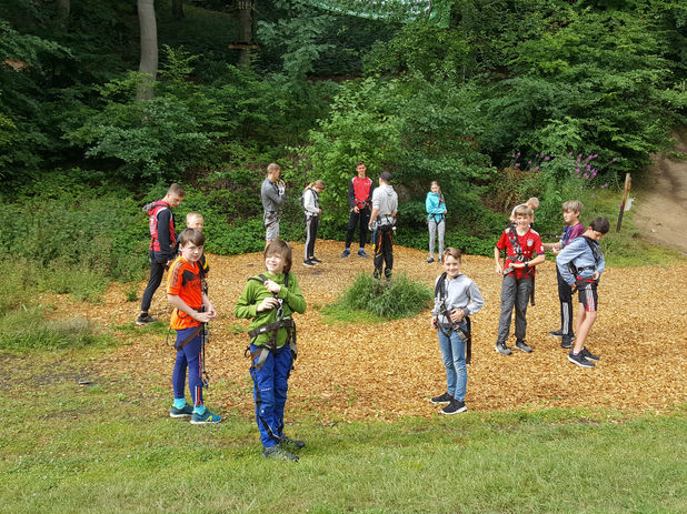 gemeinschaftliches Spiel und Spaß. Die Sporthalle wurde bei Regentagen für Parkour, Turnen und Ballspiele genutzt. Hier konnten die Teilnehmer ihre motorischen Fähigkeiten verbessern, Teamgeist entwickeln und gemeinsam Spaß haben. Willkommene Abwechslung boten verschiedene Ausflüge, die teilweise mit dem eigenen Fahrrad unternommen wurden. Highlights waren die Wanderung mit dem Förster, der Besuch im Schwimmbad, die mehr oder weniger erfolgreiche Abnahme verschiedener Disziplinen für das Deutsche Sportabzeichen und natürlich der obligatorische Abschlusstag bei unserem Kooperationspartner dem Waldkletterpark. Hier konnten Kletterkünste getestet,